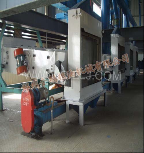 4、榨油工序:榨油機是一種連續螺旋榨油,適用于含油量較多的植物油料。榨出餅的結構松而不粉碎,有利于溶劑滲透,餅的含油率和水份適用于浸出。